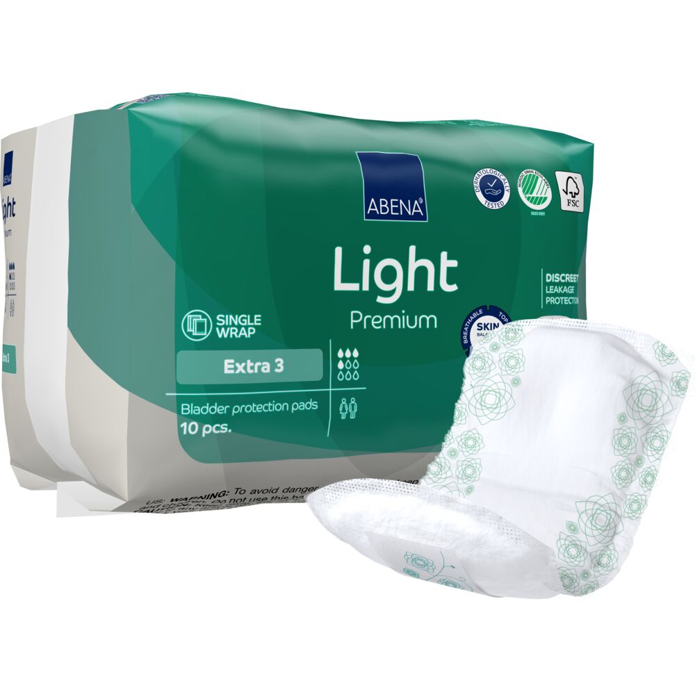 Die Abena Light Premium Extra 3 bietet verstärkten Schutz und ist ideal bei mittlerer bis stärkerer Inkontinenz. Dank des leistungsstarken Absorptionskerns und der Geruchsneutralisierung bleibt die Haut trocken und frisch. Das Top-Dry-System sorgt für angenehme Trockenheit auch bei längerem Tragen.